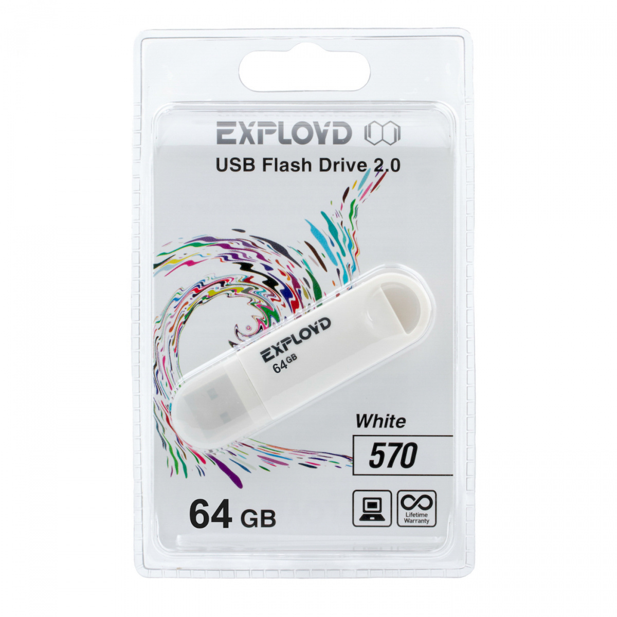 - Флеш-накопитель USB 64GB Exployd 570 белый (EX-64GB-570-White)