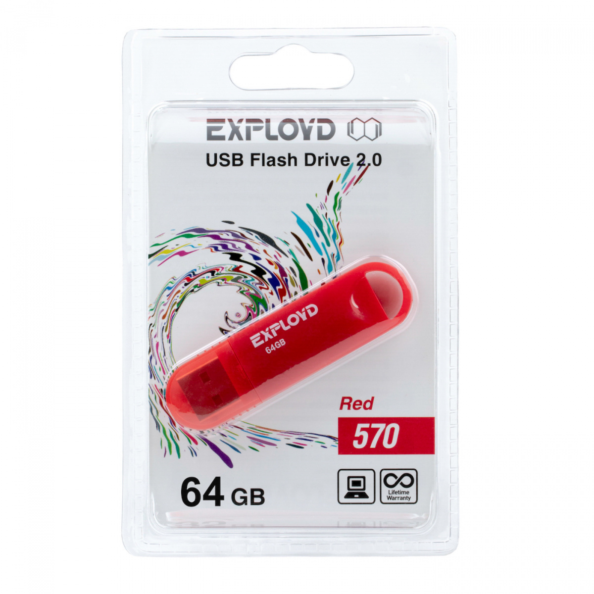 - Флеш-накопитель USB 64GB Exployd 570 красный (EX-64GB-570-Red)