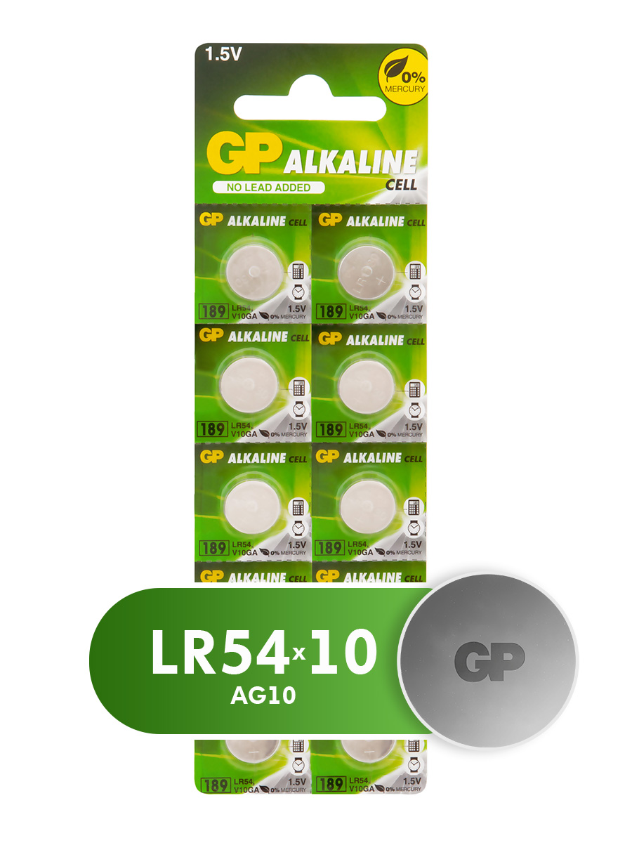 - Элемент питания GP AG10/LR1130/LR54/389A/189 BL10 (10/250/5000) (4891199015519)