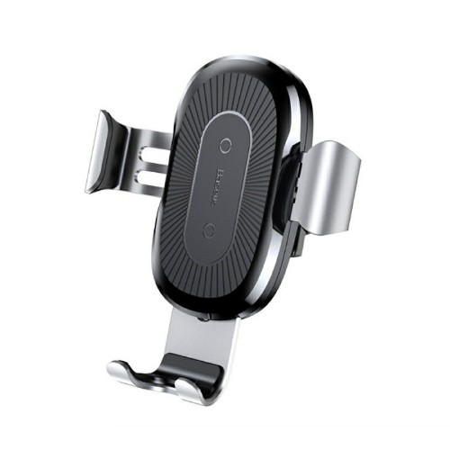 - Держатель автомобильный Baseus, WXYL-0S, Wireless charger, 9W, пластик, с беспроводной зарядкой, в воздуховод, цвет: серебряный (6953156270787)