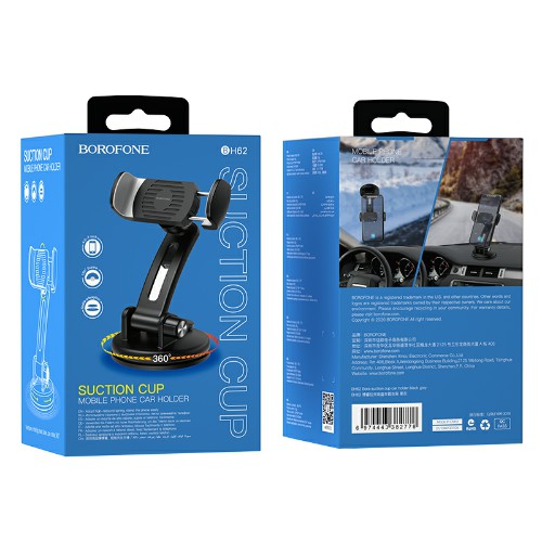 - Держатель автомобильный Borofone BH62, Bora, пластик, торпедо, лобовое стекло, двойной зажим, для телефона 4.5-7", цвет: чёрный (1/60) (6974443382778)