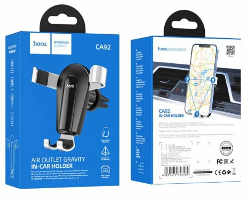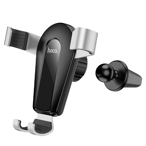 - Держатель автомобильный HOCO CA92, Gold shield, для смартфона, алюминий, пластик, силикон, воздуховод, магнит, цвет: чёрный, серебряная вставка (6931474753489)