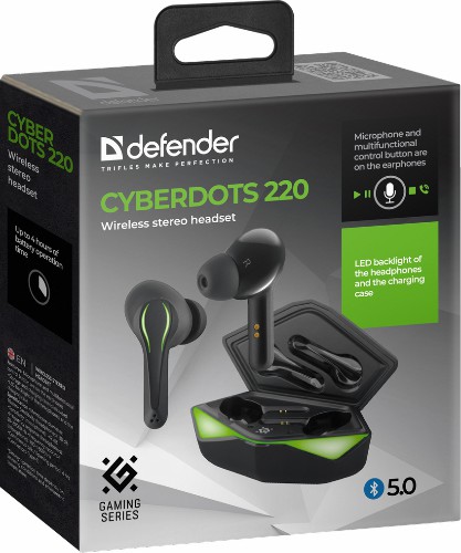 - Беспроводные TWS-наушники DEFENDER CyberDots 220 игровые, Bluetooth, черные (1/60) (63220)