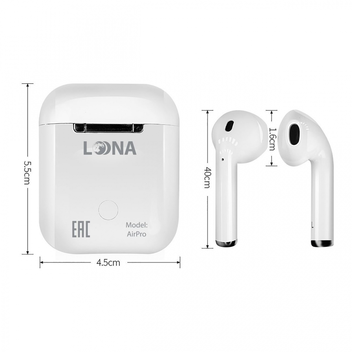 - Беспроводные TWS-наушники Loona TWS-003white,Bluetooth: V5.0, кабель lightning для зарядки, белые (TWS-003WHITE)