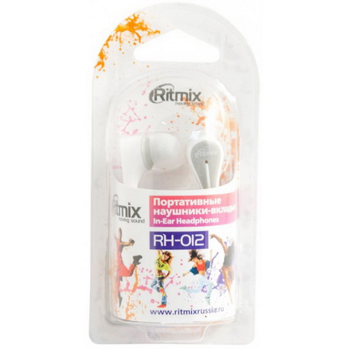 - Проводные внутриканальные наушники RITMIX RH-012, шнур 1.2 м, белые (1/10/400) (15117393)