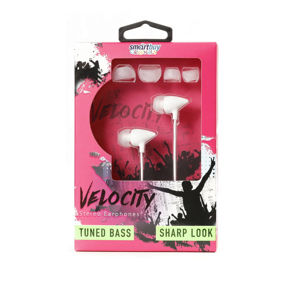 - Внутриканальные наушники Smartbuy VELOCITY, 10мм, сменные амбушюры, L-штекер, белые(SBE-502) (1/36)