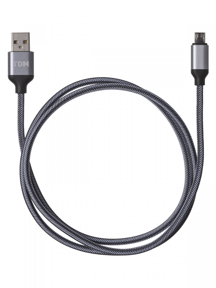 - Дата-кабель TDM ДК 10, USB - micro USB, 1 м, тканевая оплетка, серый, (1/200) (SQ1810-0310)
