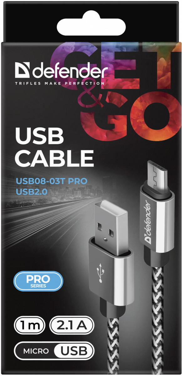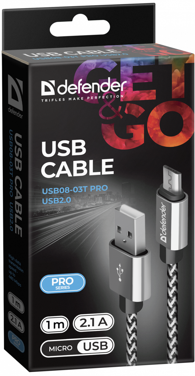 - Кабель DEFENDER USB08-03T PRO USB2.0, белый, AM-MicroBM, 1m, 2.1A (1/100) (87803)