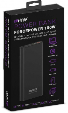 - Мобильный аккумулятор Внешний аккумулятор HIPER Power bank ForcePower100W, 20000mAh, Power Delivery 100W; Intput: micro-USB; USB-C; Output: 1xUSB 5V/3A; 1xUSB 5V-12V/18W QC (FORCEPOWER 100W)