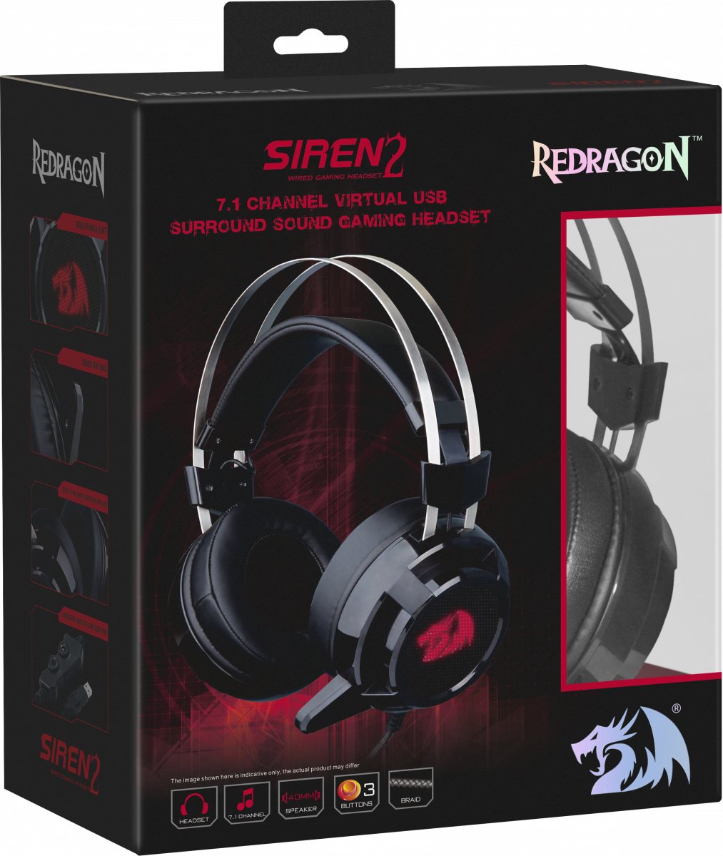- Гарнитура REDRAGON Siren 2, черный/красный, игровая, объемный звук 7.1, кабель 2 м (1/10) (74830)