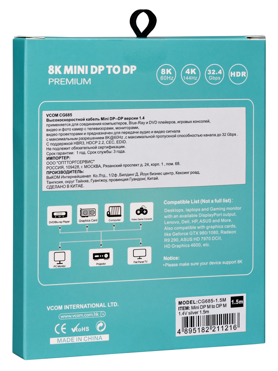 - Кабель-переходник miniDP (M)--> DP M 1.4V 1,5м VCOM <CG685-1.5M> (1/60)