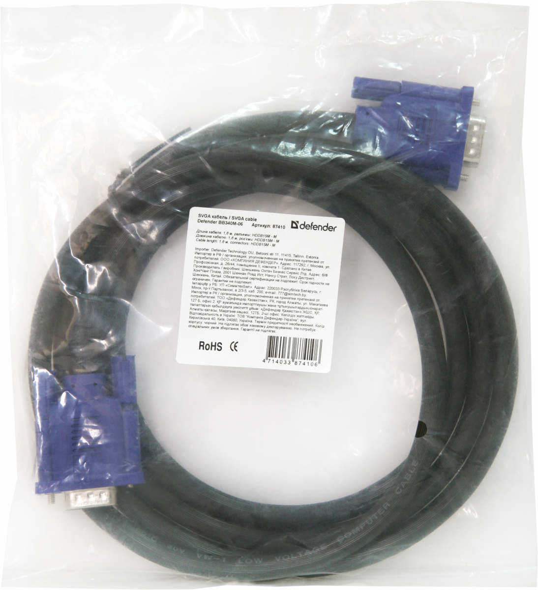 - Кабель DEFENDER BB 340M-06 SVGA HDDB15 M/M, 1.8 м. pb (1/40/80) (87410)
