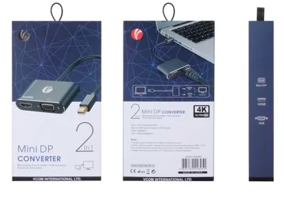 - Кабель-переходник miniDP (M)--> HDMI(F)+VGA(F)4K@30Hz VCOM Allum shell<CG646M-0.15> (1/135)