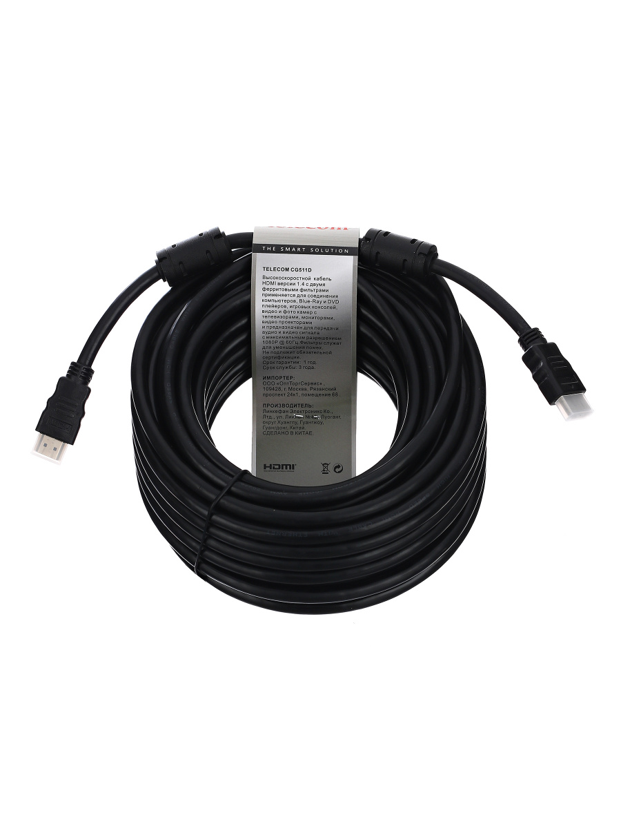 - Кабель HDMI to HDMI (19M -19M) ver.1.4b, 2 фильтра, позолоч. контакты, 15м. TELECOM (1/20) (CG511D-15M)