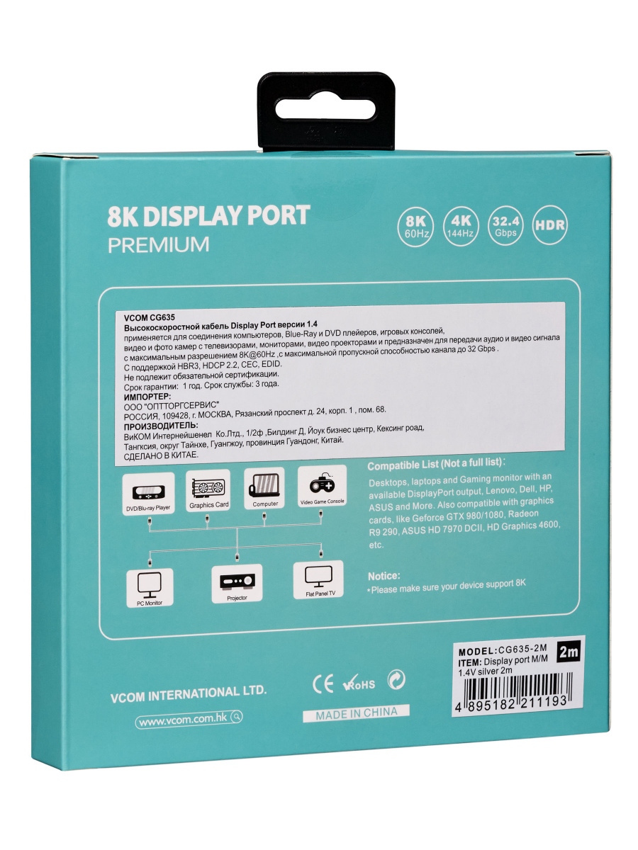 - Кабель соединительный DP v1.4, 8K@60Hz, 2m VCOM <CG635-2M> (1/40)