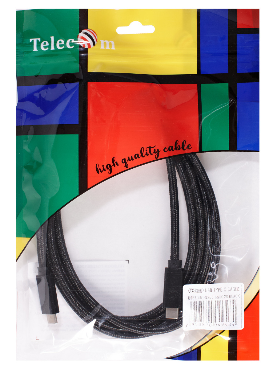 - Кабель USB 3.1 Type Cm -- Cm IC 5А 20Gbs длина 2M, Telecom <TC420B-2M> черный (1/125)