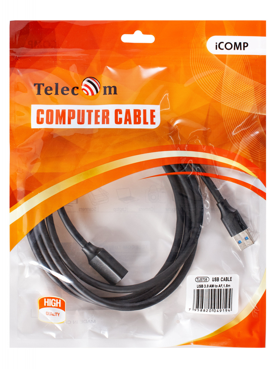 - Кабель удлинительный USB 3.0 Am-Af 1.8m TELECOM черный (TUS708-1.8M) (1/75)