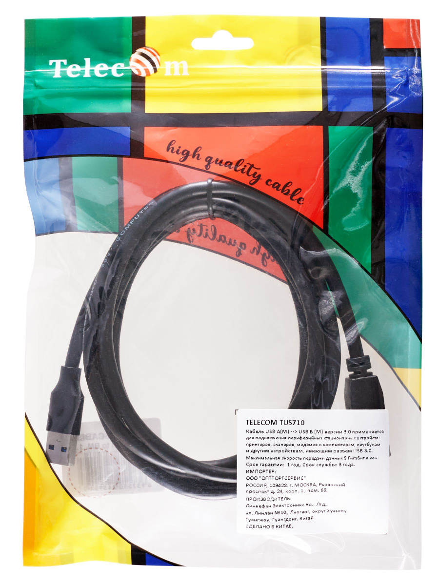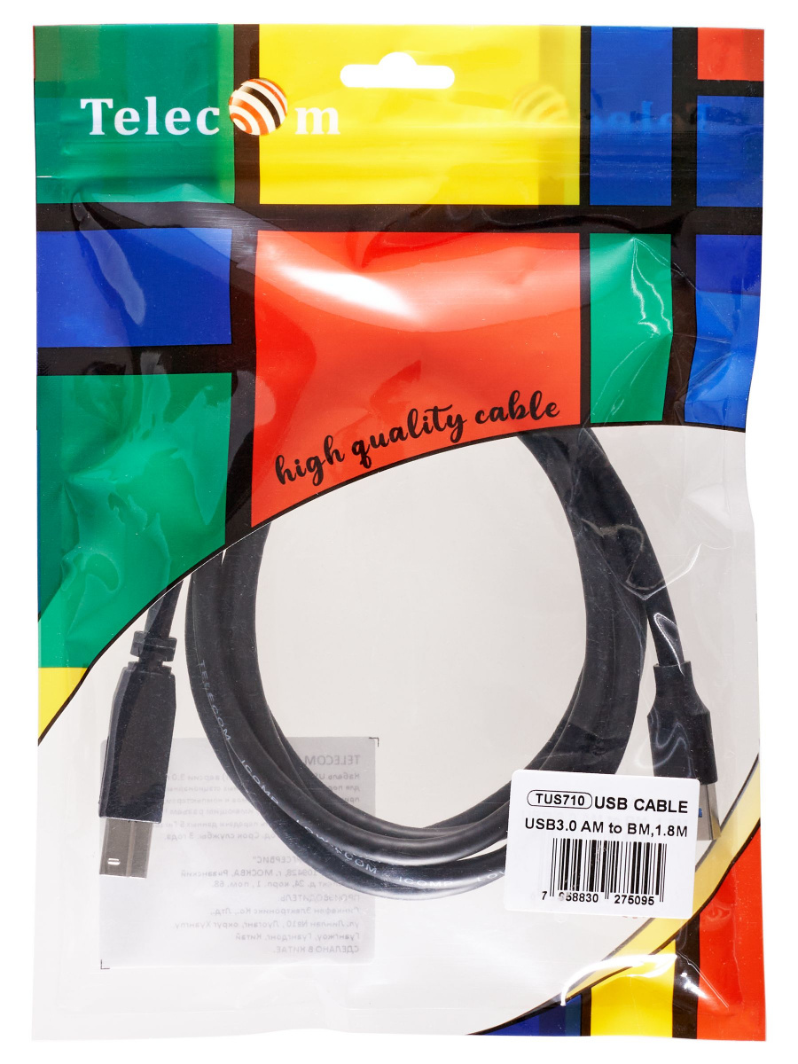 - Кабель соединительный USB 3.0 Am/Bm 1,8m TELECOM (TUS710-1.8M) (1/100)