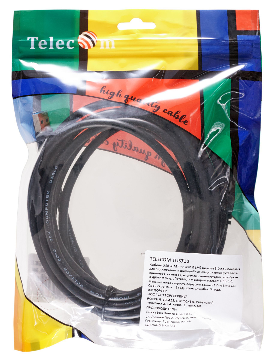 - Кабель соединительный USB 3.0 Am/Bm 3m TELECOM (TUS710-3M) (1/70)