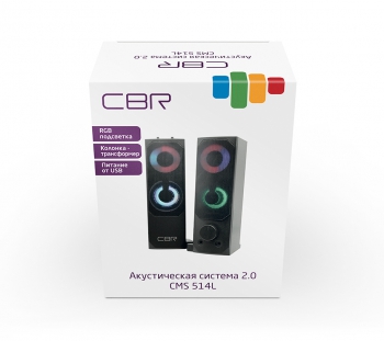 - Акустическая система 2.0, CBR CMS 514L Black , USB, 2х3 Вт (6 Вт RMS), пластик, RGB-подсветка, конструкция-транформер, кабель 1,3 м, чёрный (1/20)