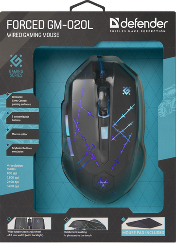 - Мышь проводная игровая DEFENDER Forced GM-020L, USB, 6 кнопок, черный (1/40) (52020)