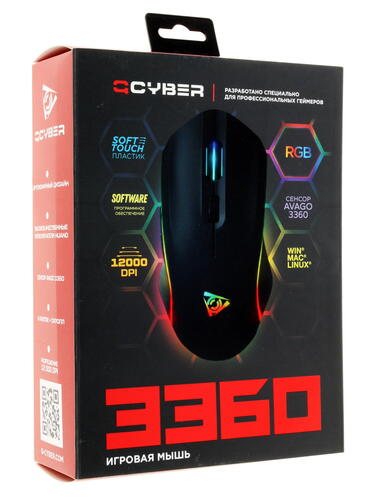 - Мышь проводная оптическая QCYBER 3360, 12000 dpi, сенсор Avago 3360, USB, черная (QC-02-007DV03)
