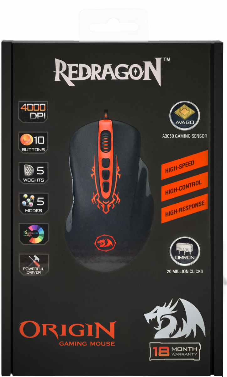 - Мышь REDRAGON Origin, черная/красная, USB (1/60) (70343)