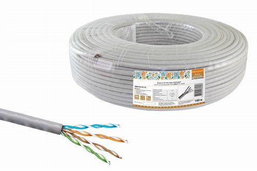 - Кабель витая пара народный U/UTP Cat 5e 4х2х24AWG CCA (100м) PVC, серый (SQ0107-0115)