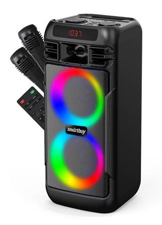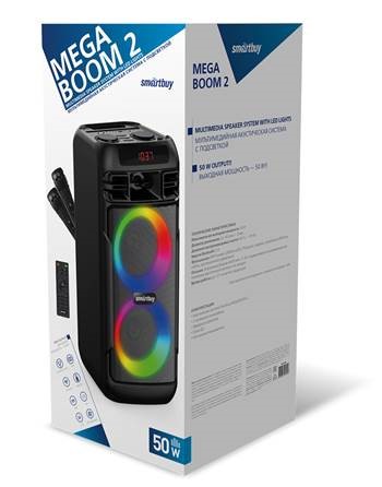 - Колонка портативная Smartbuy MEGA BOOM 2, 2.0, 50Вт, напольная, BT, MP3, FM, 2 микрофона, ПДУ (SBS-5600)