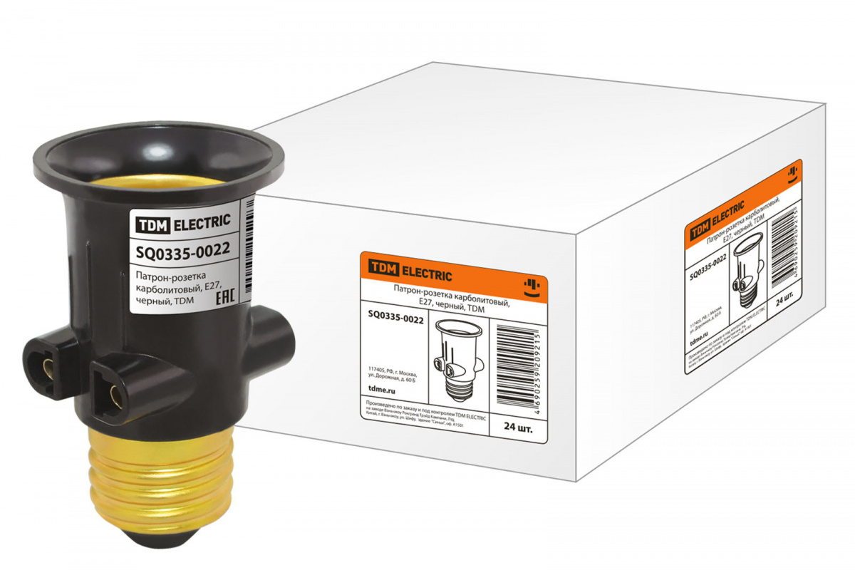 - Патрон-розетка TDM карболитовый, Е27, черный, (1/24/600) (SQ0335-0022)