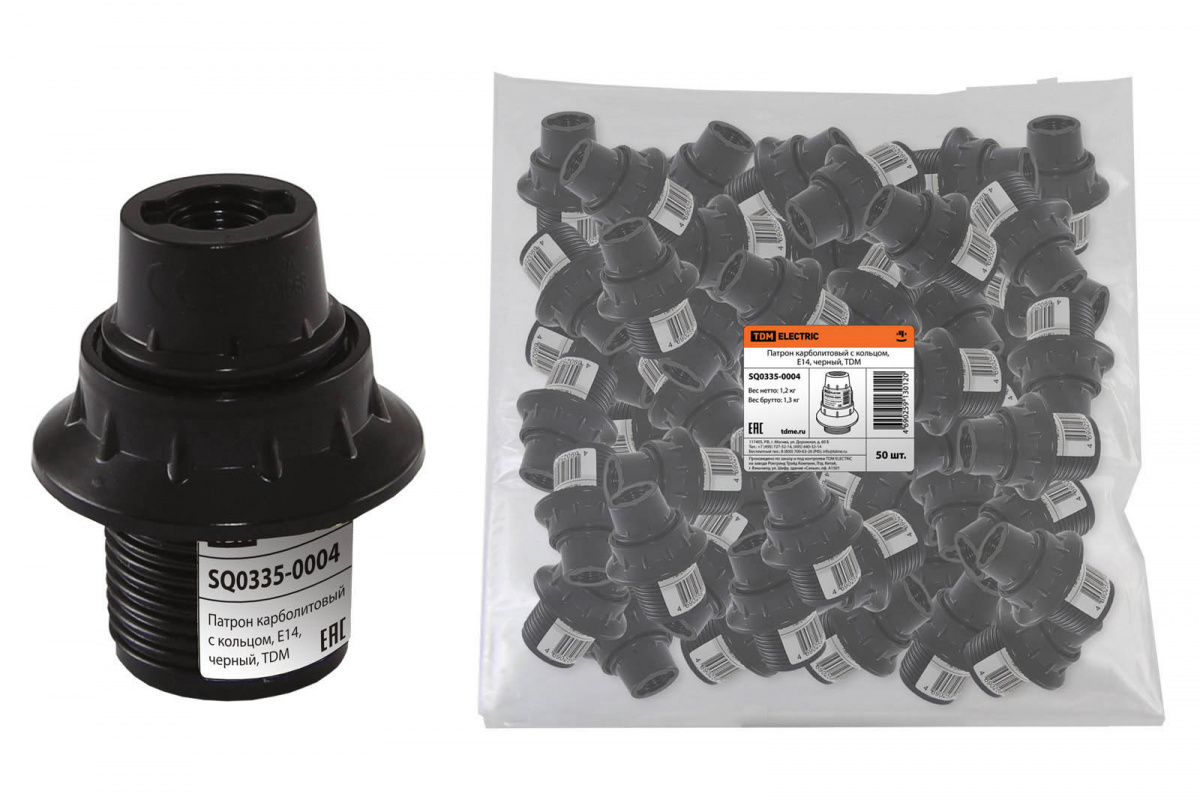- Патрон TDM карболитовый с кольцом, Е14, черный, (1/200) (SQ0335-0004)