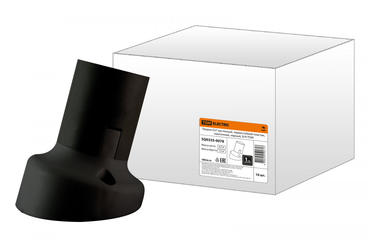 - Патрон TDM Е27 настенный, термостойкий пластик, наклонный, черный, Б/Н (10/10/200) (SQ0335-0078)
