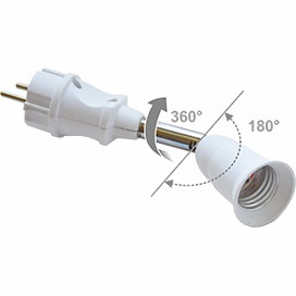 - Переходник ECOLA вилка-патрон E27 на шарнире 360°/180° 45мм без выключателя Белый (15/120) (APF7TWEAY)