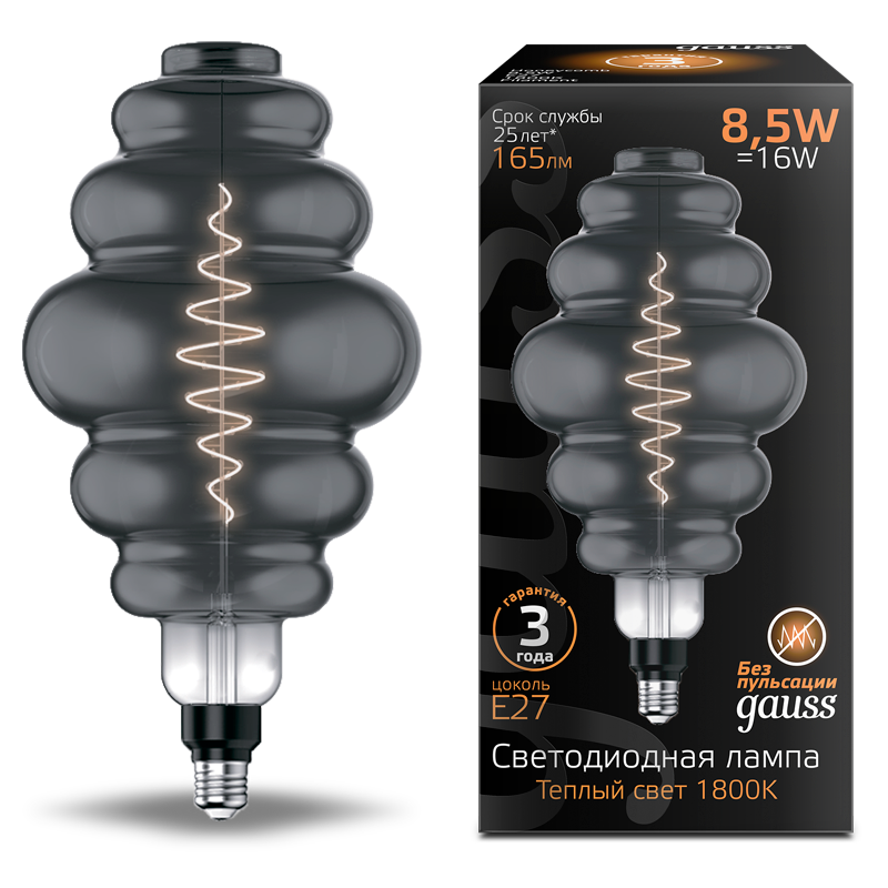 - Лампа светодиодная GAUSS Filament Honeycomb 8.5W 165lm 1800К Е27 gray 1/2 (161802005)