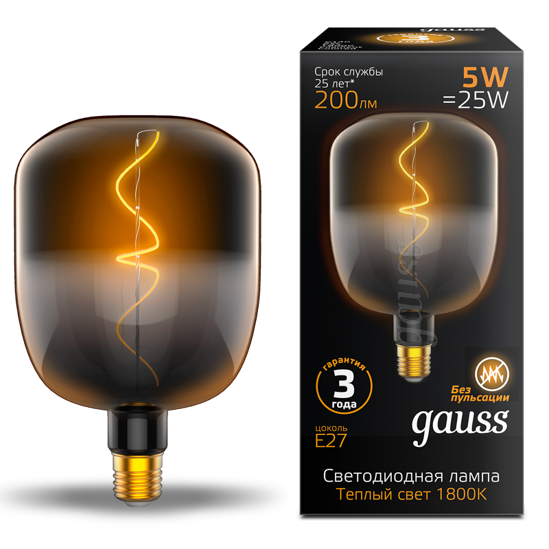 - Лампа светодиодная GAUSS Filament V140 5W 200lm 1800К Е27 black-clear flexible 1/6 (1008802105)