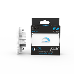 - Лампа светодиодная GAUSS GX53 8W 680lm 6500K диммируемая 1/10/100 (108408308-D)