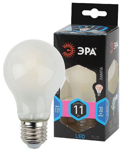 - Лампа светодиодная ЭРА F-LED A60-11W-840-E27 frost Е27 / E27 11Вт филамент груша матовая нейтральный белый свет (1/100) (Б0035036)