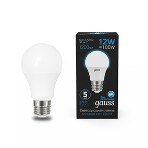 - Лампа светодиодная GAUSS A60 12W 1200lm 6500K E27 1/10/50 (102502312)