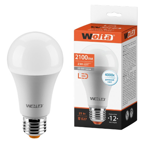 - Лампа светодиодная WOLTA Груша A67 25Вт 4000К 2100лм Е27 1/50 (25S67BL25E27)