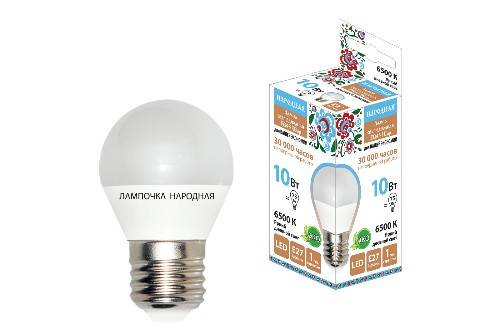 - Лампа светодиодная НАРОДНАЯ FG45-10 Вт-230 В-6500 К–E27 (1/10/100) (SQ0340-1591)