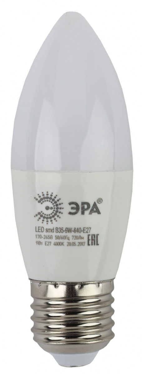- Лампа светодиодная ЭРА STD LED B35-9W-840-E27 E27 / Е27 9Вт свеча нейтральный белый свeт (1/100) (Б0027972)