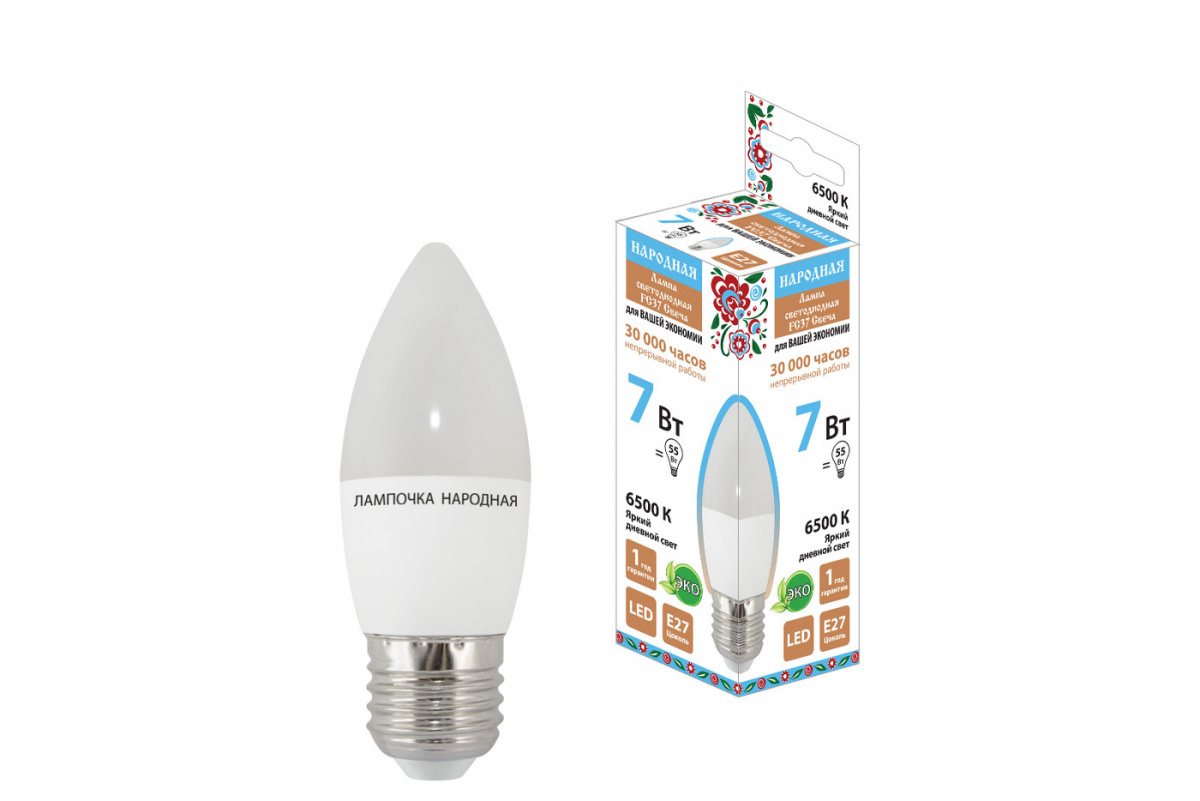 - Лампа светодиодная НАРОДНАЯ FС37-7 Вт-230 В -6500 К–E27 (1/10/100) (SQ0340-1544)