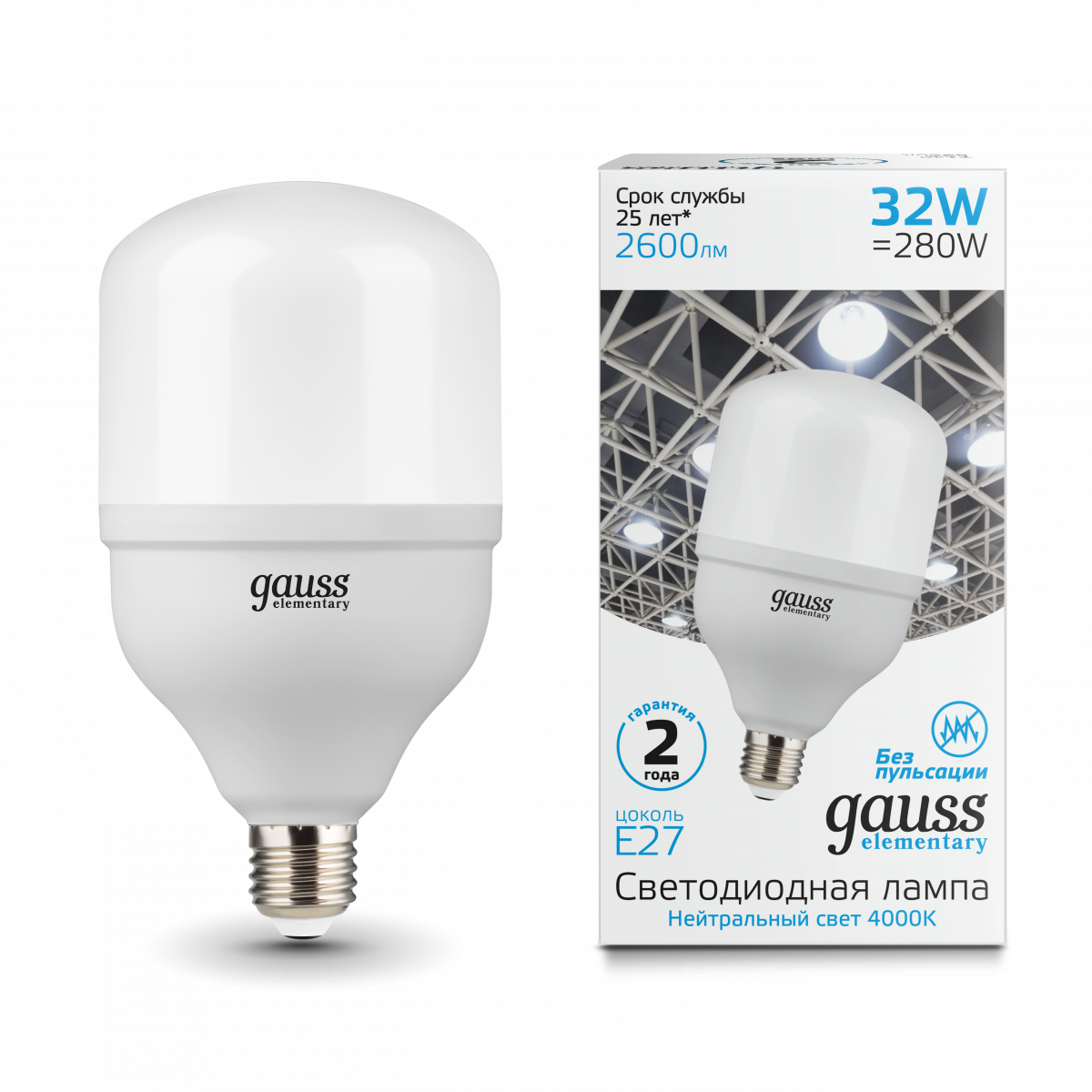 - Лампа светодиодная GAUSS Elementary T100 32W 2600lm 4000K E27 1/20 (63223)