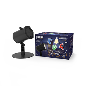 - Проектор светодиодный GAUSS "4 картинки" серия Holiday, анимированные картинки Дед Мороз, Рождественский Олень, Подарки, Ёлка, IP44, 1/30 (HL093)