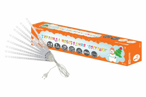 - Гирлянда "Сосульки", падающий белый свет, 30 см, 8 шт в комплекте, 3,8 м, TDM (SQ0361-0026)