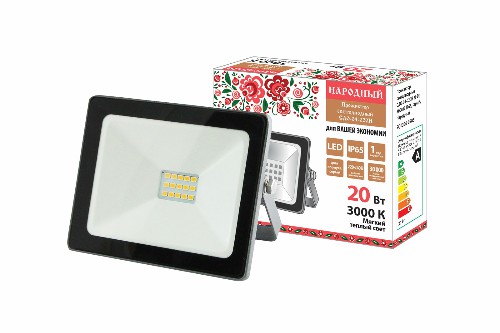 - Прожектор светодиодный НАРОДНЫЙ СДО-04-020Н 20 Вт, 3000 К, IP65, серый, (1/1/24) (SQ0336-0285)