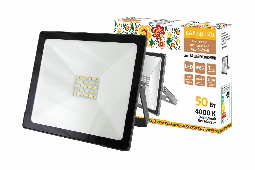- Прожектор светодиодный НАРОДНЫЙ СДО-04-050Н 50 Вт, 4000 К, IP65, серый, (1/1/24) (SQ0336-0283)