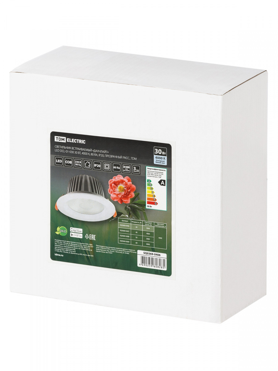 - Светильник светодиодный TDM " Даунлайт" встраиваемый DCL-01-030 30 Вт, 4000 К, 80 Ra, IP20, прозрачный расс., (1/20) (SQ0369-0406)