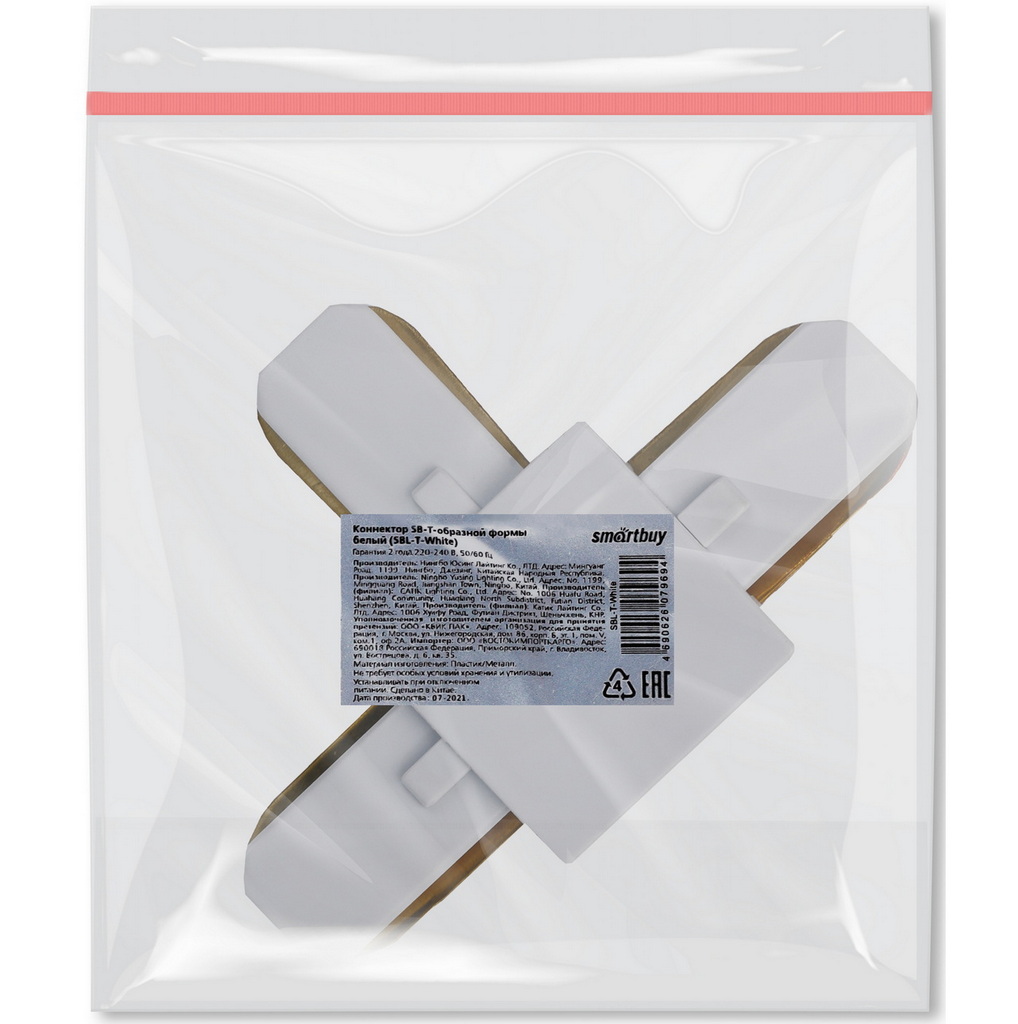 - Коннектор SMARTBUY SB-T-образной формы Белый (SBL-T White)(1/50) (SBL-T-White)