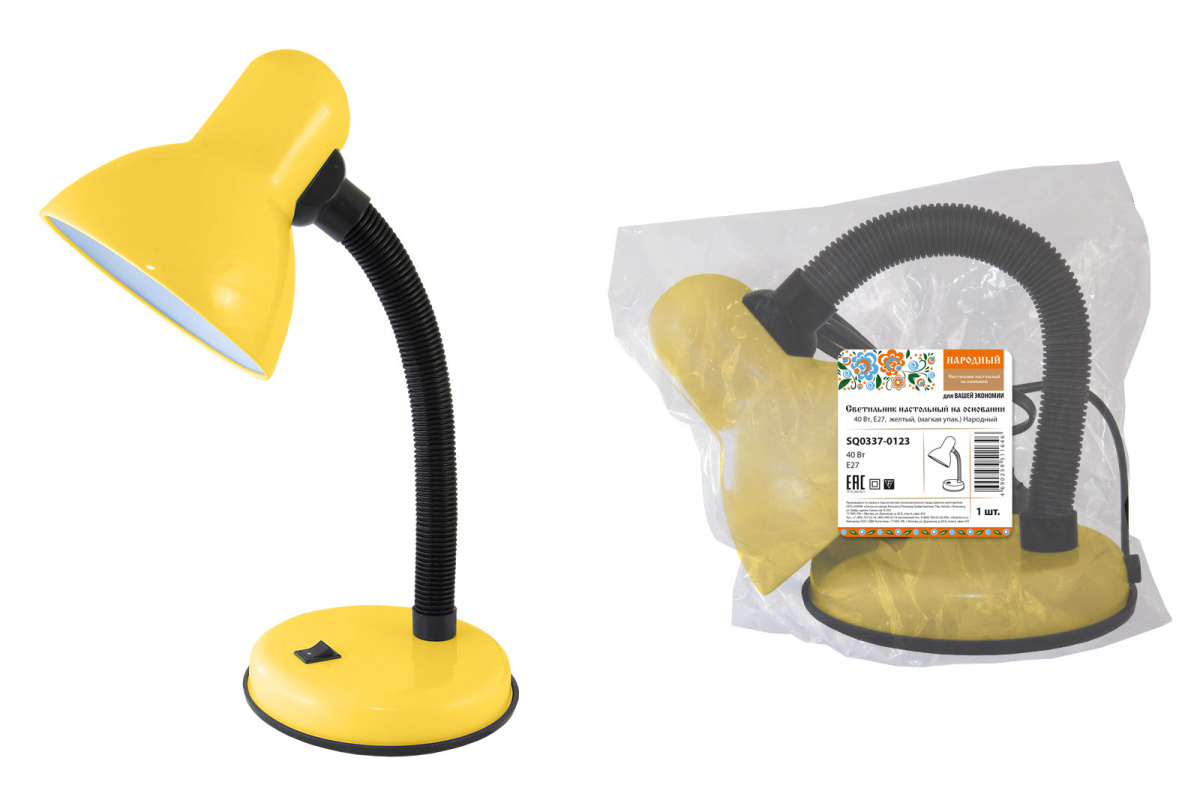 - Светильник Народный настольный на основании 40Вт, E27, желтый, (мягкая упак.) (1/24) (SQ0337-0123)